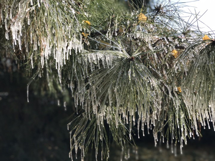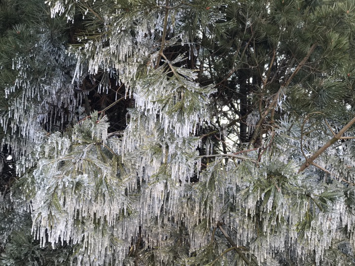 雾凇,俗称树挂,是低温时空气中水汽直接凝华,或过冷雾滴直接冻结在物体上的乳白色冰晶沉积物,它非冰非雪是非常美丽的自然奇观。在我们老家也叫冰花,随着气候的全球变暖已经很多年没见过了。