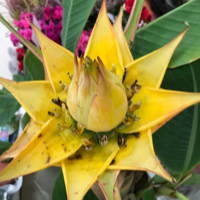 粉爪。细长,叶子像没睡醒的折着扇子。(其实爪跟棕榈酢真的一点都不像的!)