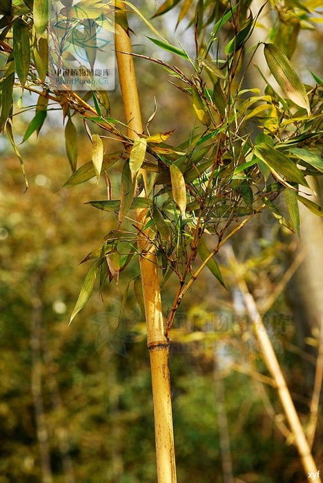 金竹(学名:Phyllostachys sulphurea (Carr.) A. et C. Riv.),竿高6-15米,直径4-10厘米,幼时无毛,微被白粉,绿色,成长的竿呈绿色或黄绿色;中部节间长20-45厘米,壁厚约5毫米。竿环在较粗大的竿中于不分枝的各节上不明显;箨环微隆起。箨鞘背面呈乳黄色或绿黄褐色又多少带灰色,有绿色脉纹,有淡褐色或褐色略呈圆形的斑点及斑块;箨耳及鞘口繸毛俱缺;箨舌绿黄色,边缘生淡绿色或白色纤毛;箨片狭三角形至带状,外翻,微皱曲,绿色,但具桔黄色边缘。末级小枝有2-5叶;叶鞘几无毛或仅上部有细柔毛;叶耳及鞘口繸毛均发达;叶片长圆状披针形或披针形。花枝未见。笋期5月中旬。原产中国,黄河至长江流域及福建均有分布。1840年由上海引至法国栽培,1928年由法国引至美国。竿可作小型建筑用材和各种农具柄;笋供食用,惟味微苦。[1]
