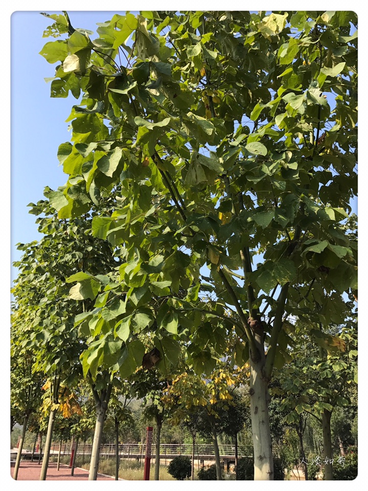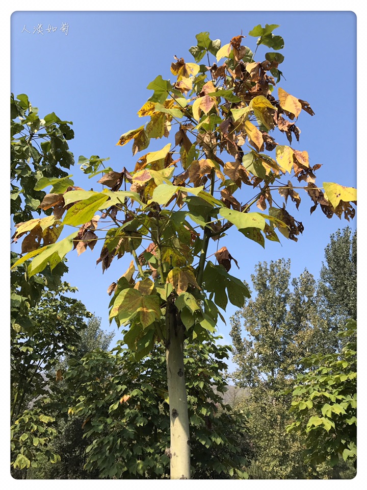 初见梧桐是十三年前在山东威海某酒店门前,被几棵高大笔直的树木惊呆,不识,问导游,答:应是梧桐。印象中只是轮廓。