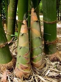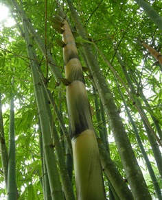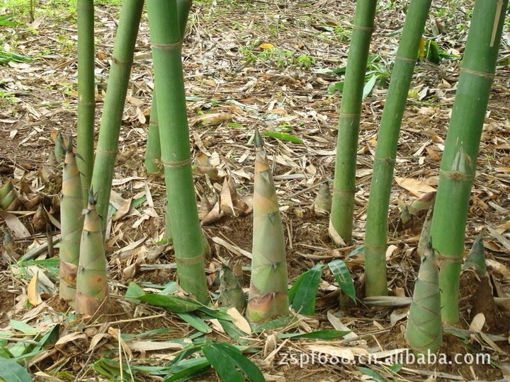 麻竹(学名:Dendrocalamus latiflorus Munro),竿高20~25米,直径15~30厘米,梢端长下垂或弧形弯曲;节间长45~60厘米, 幼时被白粉,但无毛,仅在节内具一圈棕色绒毛环;壁厚1~3厘米;竿分枝习性高,每节分多枝,主枝常单一。是中国南方栽培最广的竹种,笋味甜美,每年均有大量笋干和罐头上市,甚至远销日本和欧美等国。竿亦供建筑和篾用,庭园栽植,观赏价值也高。