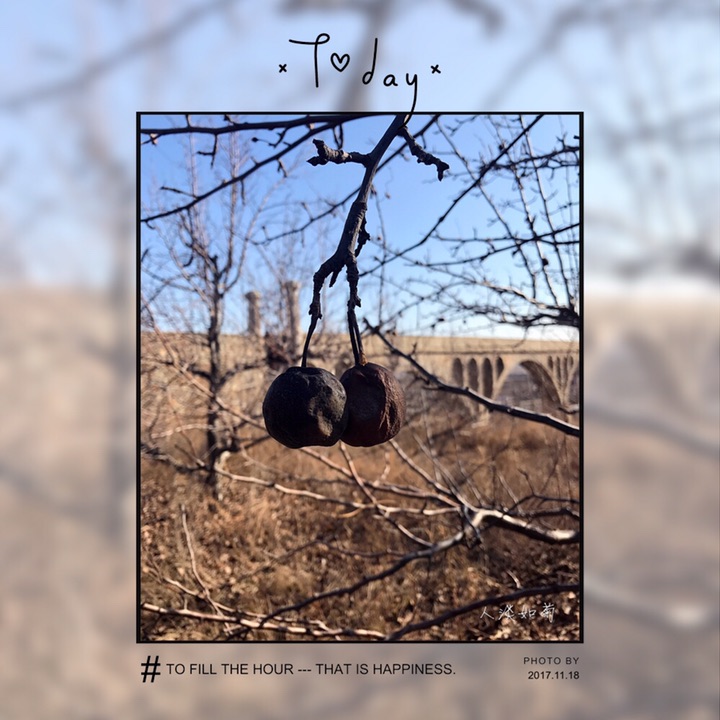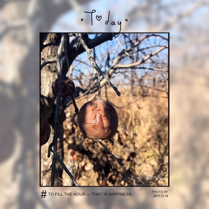 今天在拦河山遇见挂在树上的天然冻梨,摘一个品一口真是冻梨味儿哦