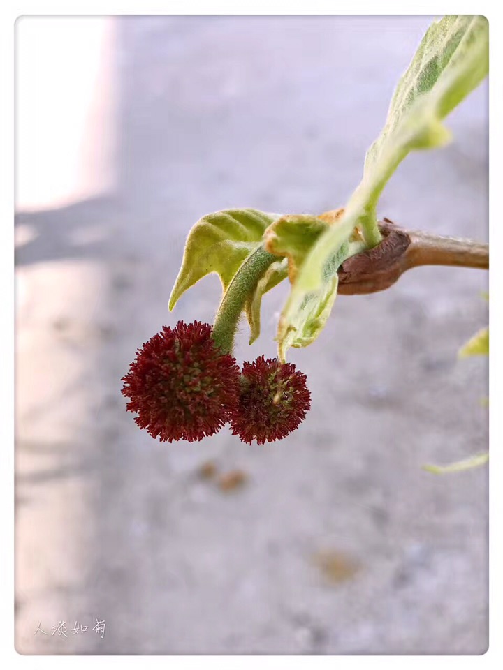 •雌花序球成熟后,花柱会变红,雌雄的差别就出来了。