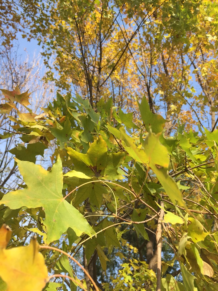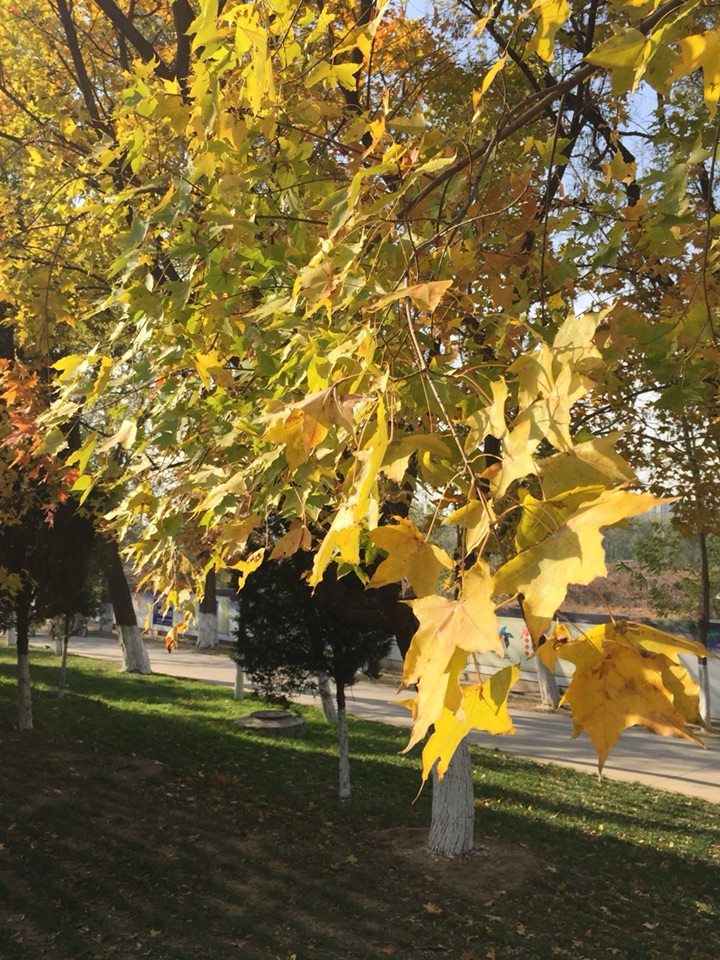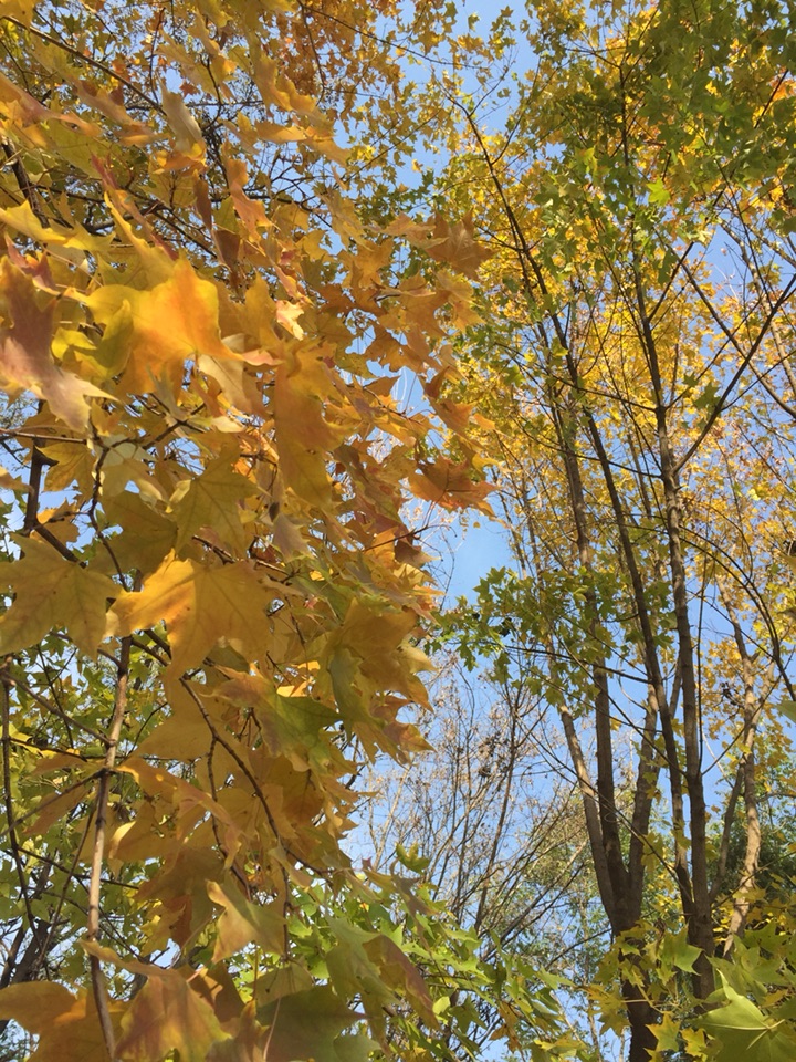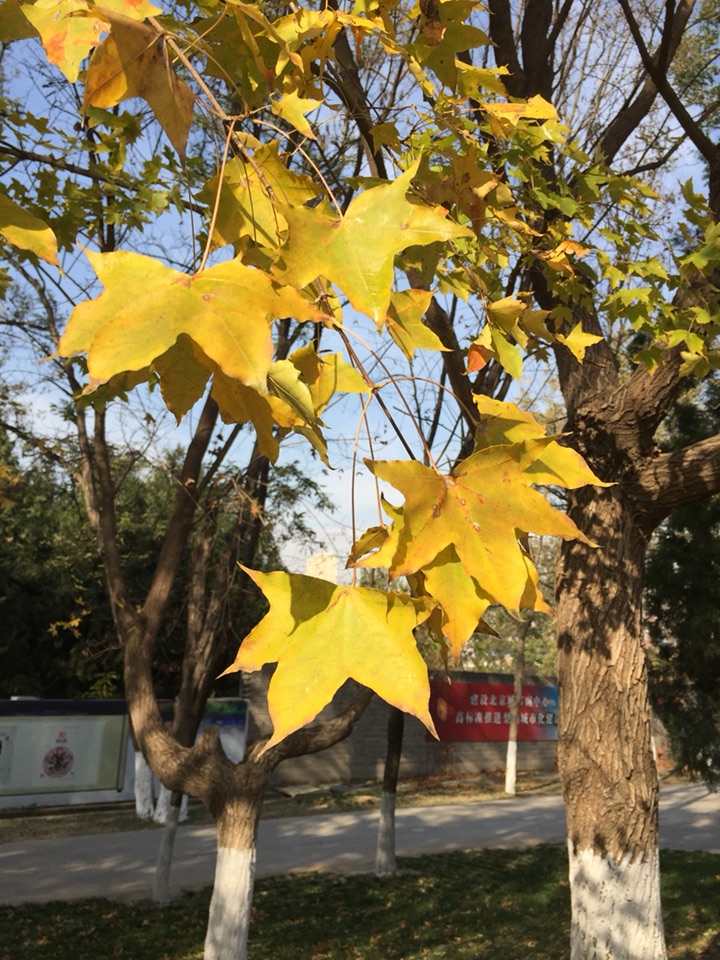 前几天拍的,与红黄色的秋叶相比显得有些小清新风格。