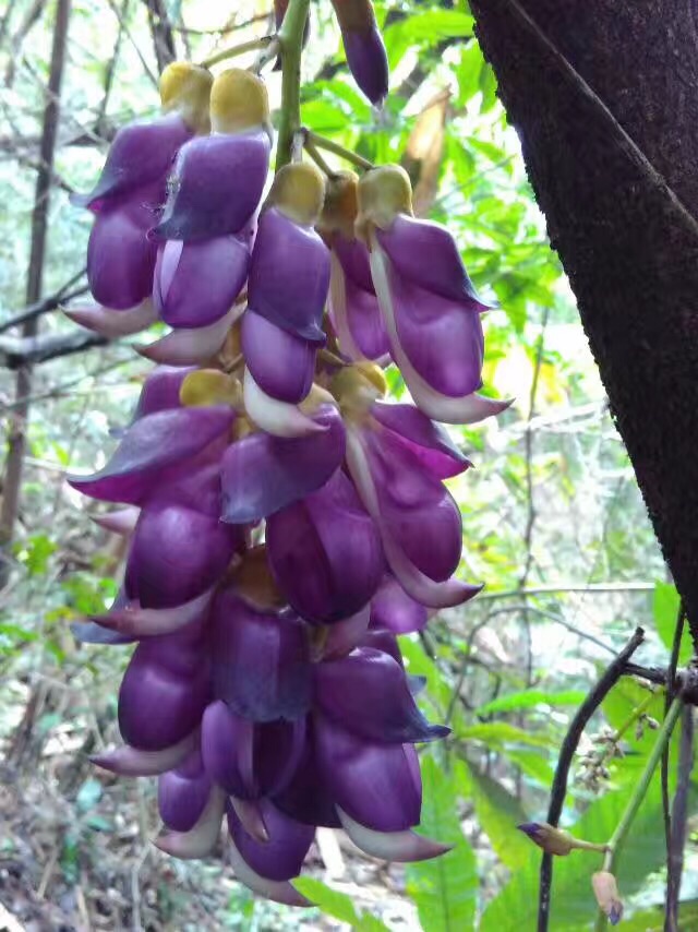 紫色的鸟儿,淡黄绿色的鸟儿,落入山涧,悄然无声,细看之下,原来是一朵朵娇艳的花-----记白云山禾雀花