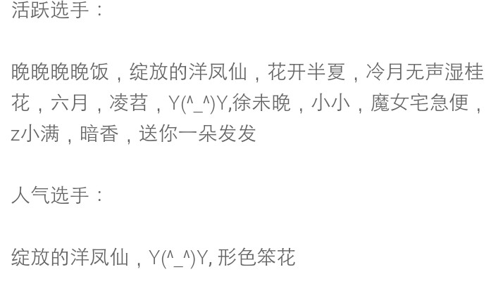 最后,又是本次活动的结果快报时间啦,绽放的洋凤仙同学还是牢占榜首呀,没有人去攻一下擂台吗(等着看热闹的吃瓜群众的期待)