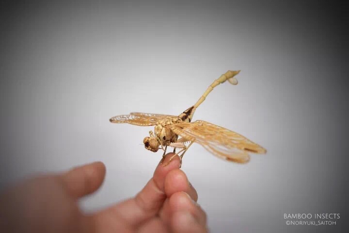 现在艺术家的脑洞和手艺越来越逆天,无论是什么材质,都能玩出各种花样来。比如这位 Noriyuki Saitoh ,就利用竹子创作出逼真度爆表的“昆虫”艺术品,让人第一眼看过去真假难辨。
