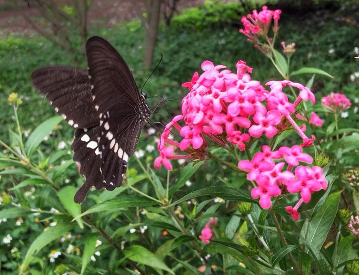 银叶朗德木,又名巴拿马玫瑰,原产墨西哥。小花虽小,却聚集而生,且颜色鲜艳。近半个月以来,花开极盛,蝴蝶喜欢色泽鲜艳且挺立的花朵,恋上了她,那就对啦!
