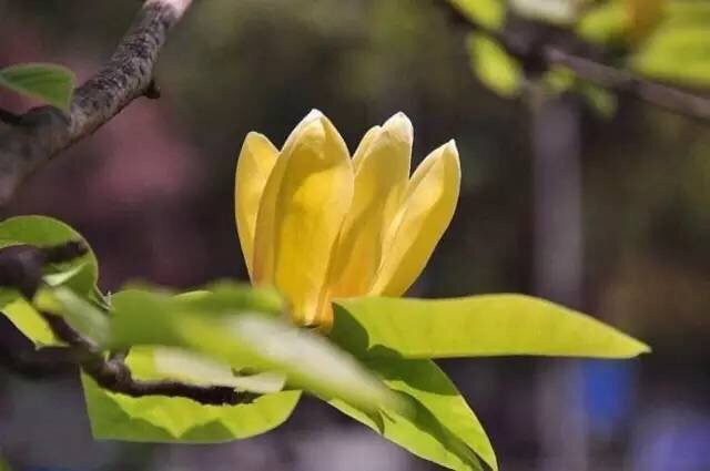 黄鸟玉兰是国外引进的新品种,较玉兰、望春玉兰树型更小,观赏价值更高,适合于庭院栽植观赏。