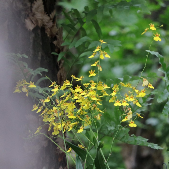 年的好友知道我喜爱兰花,于是介绍说洋兰也可爱,并送给我一株兰草,告诉说,这叫文心兰,如果你养得好,明年春季或将开花。于是我就细细地养着,一年、两年,没有任何动静,但我心里总有那么些个眷恋,养着吧,即使无花,我心里有花~~今年初夏,这株文心兰终于抽穗开花了,我激动得很,在朋友圈里晒了好几回。盛夏过后,这株花又抽了穗,上个月又开了一枝,把我乐得不行,狠狠地又发了一回朋友圈。正当我偷着乐时,偶然发现我的爱花居然成了街花!是的就是街花!园林局将其置于行道树上了……内流满面,内流满面,于是乎,有了这篇。题记。
