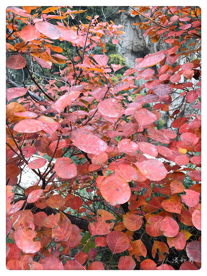 著名的北京香山红叶、济南红叶谷、山亭抱犊崮的红叶树就是该树种。黄栌花后久留不落的不孕花的花梗呈粉红色羽毛状,在枝头形成似云似雾的景观,远远望去,宛如万缕罗纱缭绕树间,历来被文人墨客比作“叠翠烟罗寻旧梦”和“雾中之花”,故黄栌又有“烟树”之称。