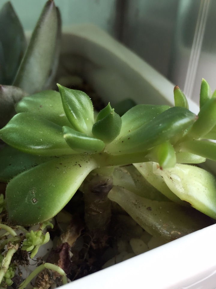 求大神解答 叶子无缘无故掉了好多,基本上都掉了,这个多肉因为看起来很脆弱,我是一直都不动它的 只浇水,对了,我还用了营养液,大神,我的多肉到底怎么了QAQ