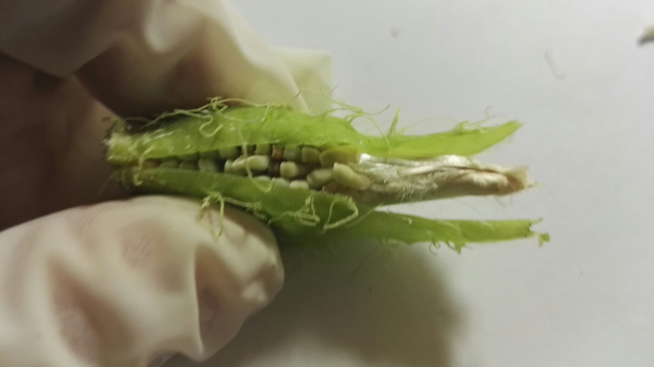 气球果里丝连得紧密,我们把靠边的丝剪掉一些,再看看