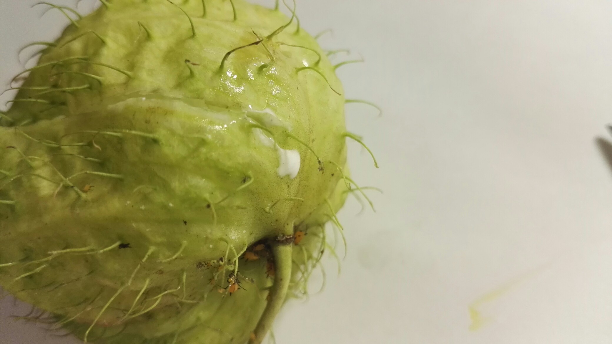 气球果虽然可爱,小伙伴们也不要直接用手触碰哦~受到刺激的气球果会泌出白色的汁液,据说是有毒的。