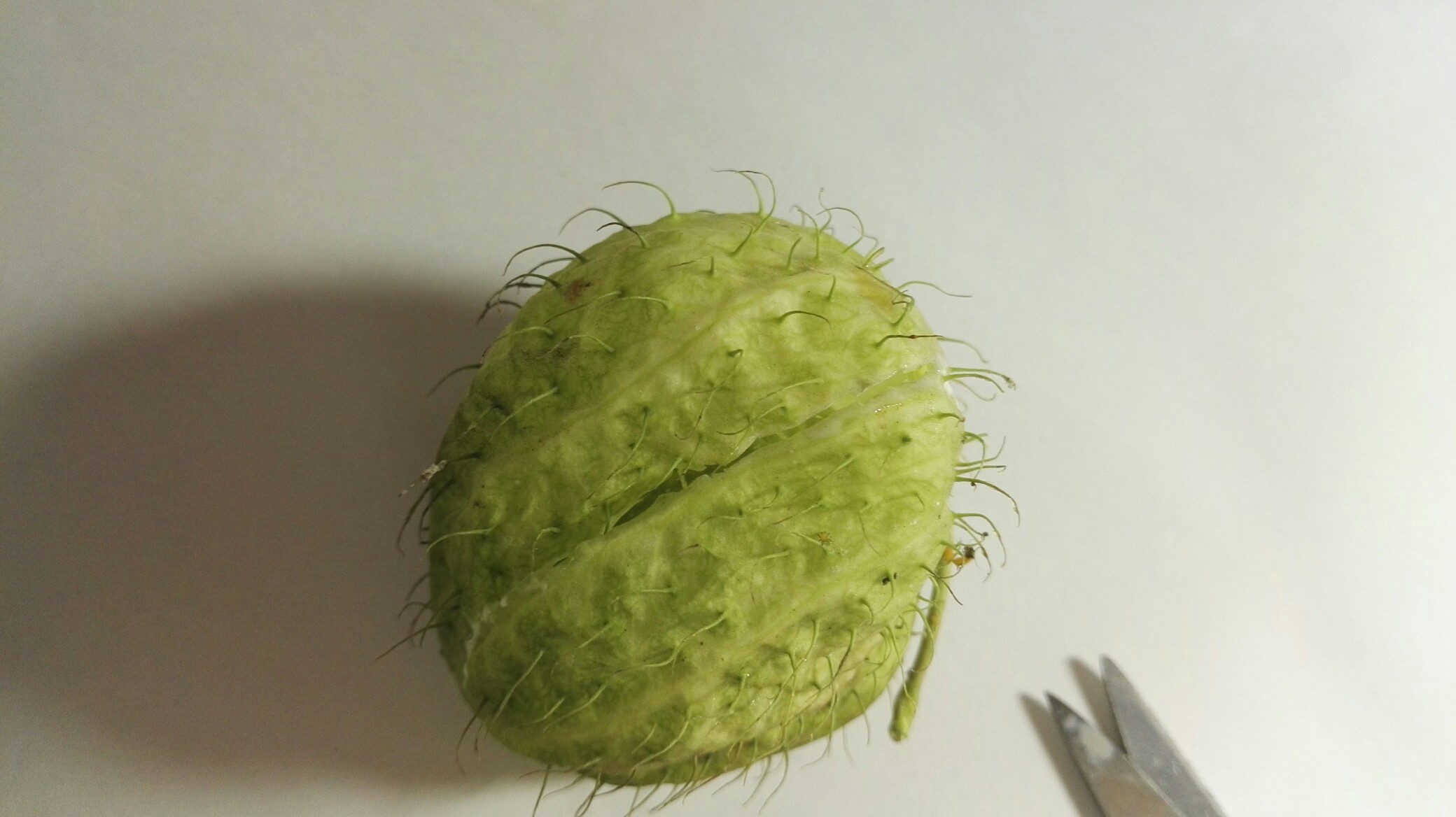 好的,我们先把气球果剪一条缝出来。
