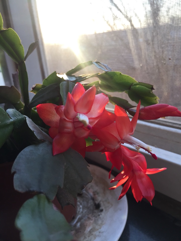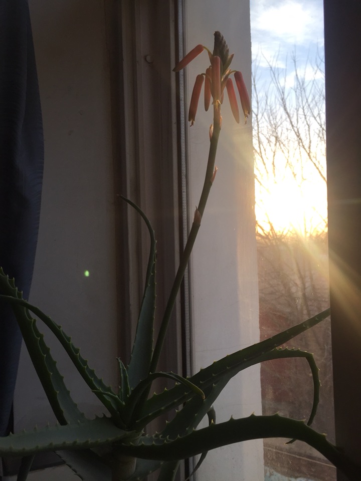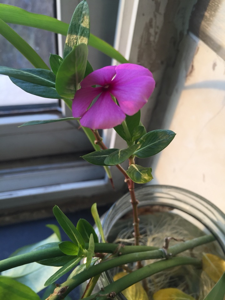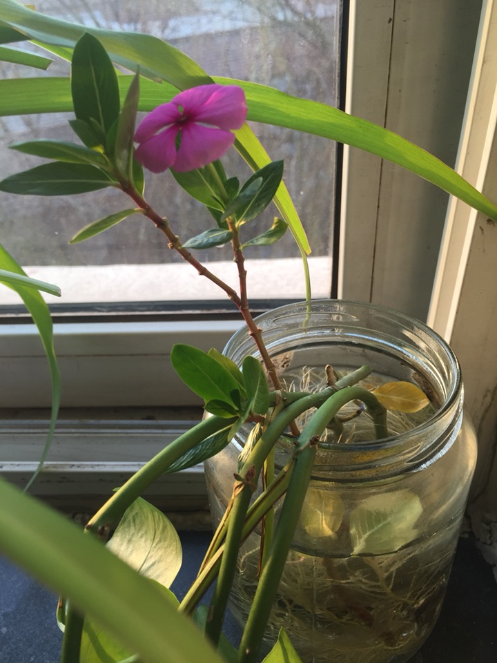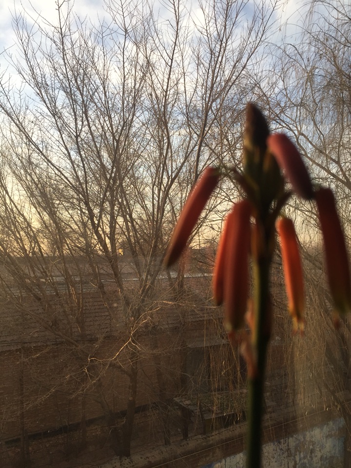 外面很冷,室内花花充满生机,泡在水里的长春花不但生根,而且开了一朵小花。长寿花马上就要开放,芦荟的花杆好长啊! 还有娇艳的蟹爪兰!美好的早上时光。