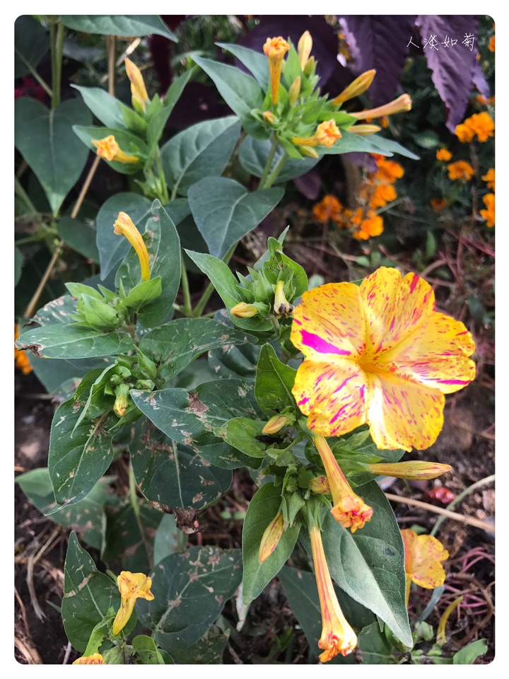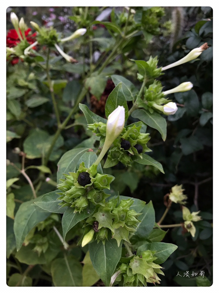 这是一种伴我长大的植物,小时候叫它胭粉豆、地雷花,直到上大学才知道它的中文名是紫茉莉,后来知道它也是入侵物种,相对于入侵物种三裂叶豚草来说对紫茉莉还是有一定感情的。