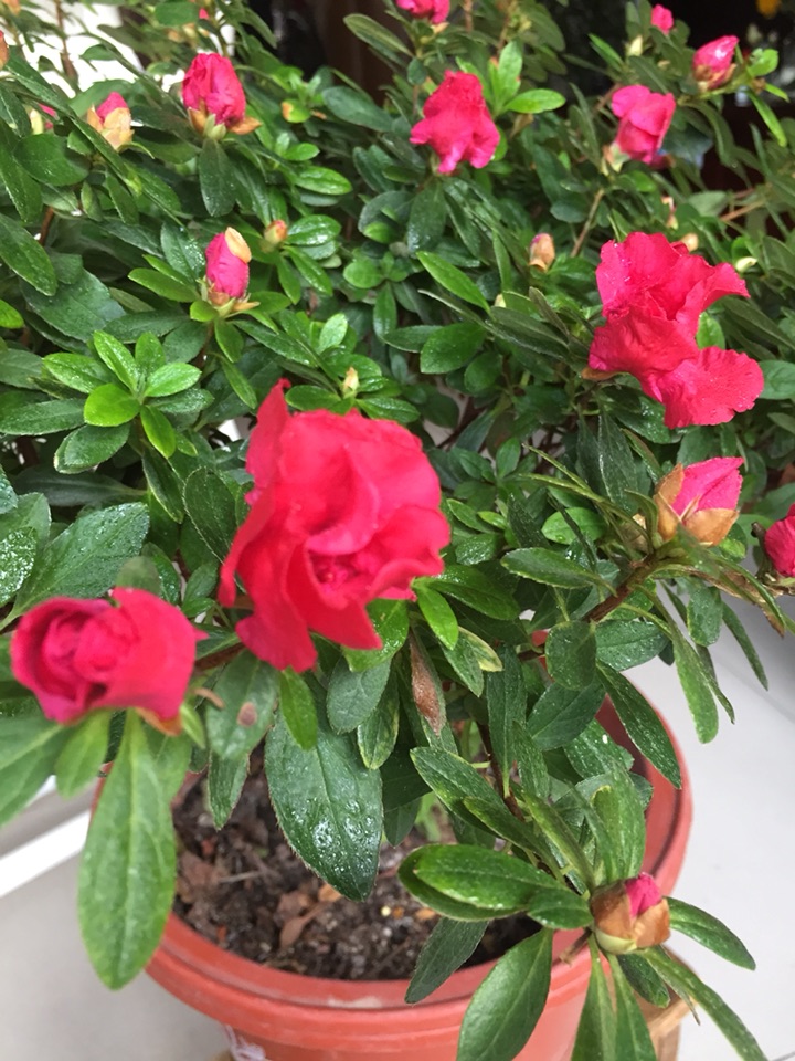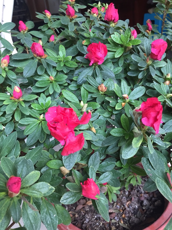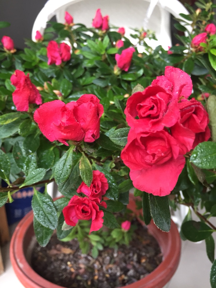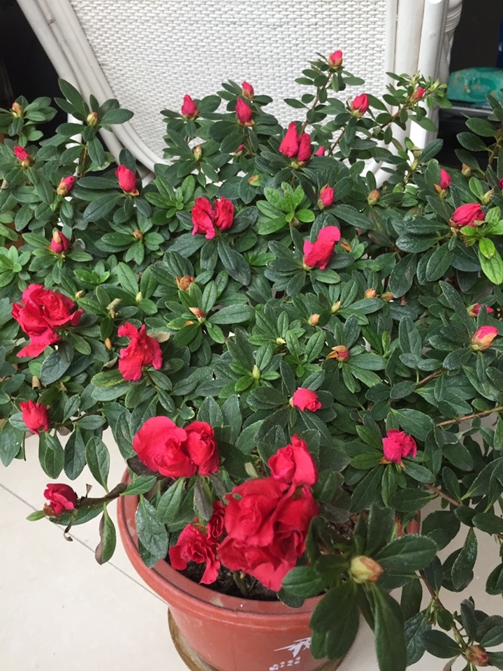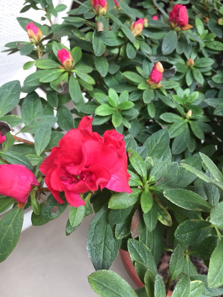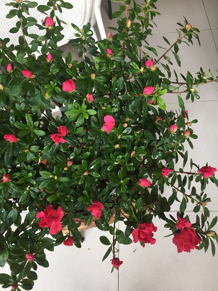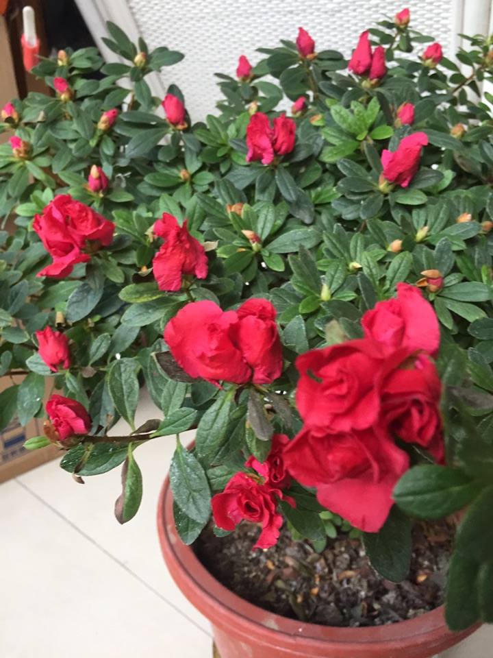 春节时买的杜鹃,移栽大盆里,七月开始长骨朵,小心伺候着,缓慢生长,入秋太冷开始担心,急切盼望供暖。见到一点点红色后又半个月了,终于有点绽放的样子。半年时间啊,果然要静待花开。