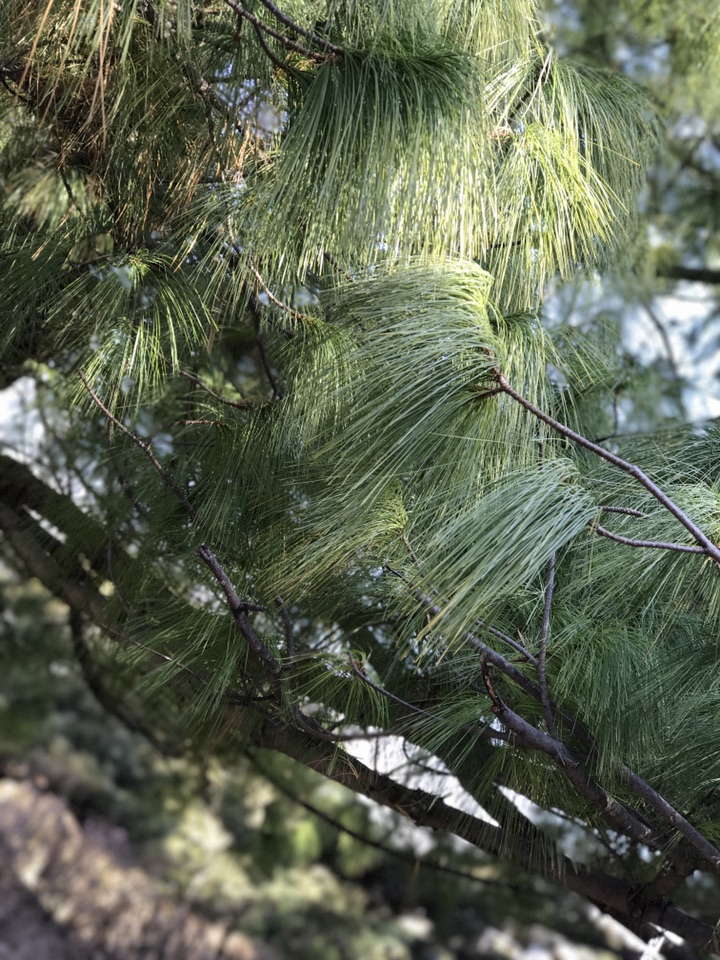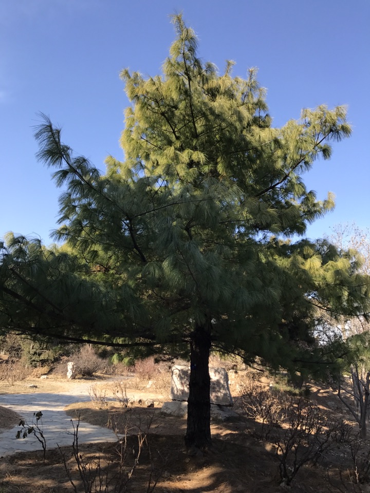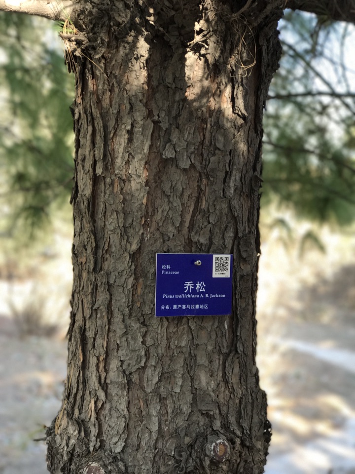 百度词条如是说“乔松——松科松属的植物。分布于印度、阿富汗、不丹、尼泊尔、缅甸、锡金、巴基斯坦以及中国大陆的云南、西藏等地,生长于海拔1,600米至3,300米的地区,多生长于针叶树阔叶树混交林中,树干高大,挺直,材质优良,结构细,纹理直,较轻软. 可作建筑、器具、枕木等用材,亦可提取松脂及松节油。尚未由人工引种栽培”。看到尚未由人工引种栽培这几个字时不由得感叹那这里的这几棵又是怎么来的?!