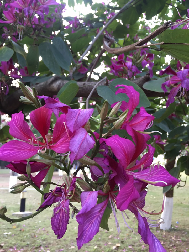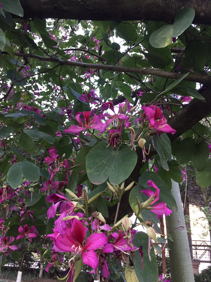 十二月的梅州,羊蹄甲花儿开得正欢。它们开满了枝头,让冬日的梅州一片姹紫嫣红。