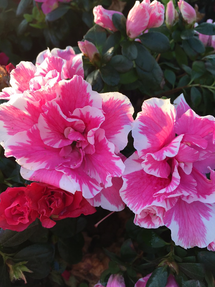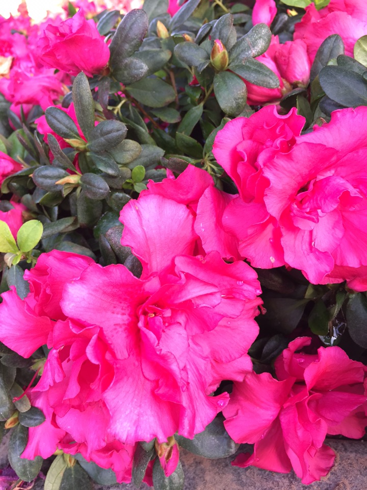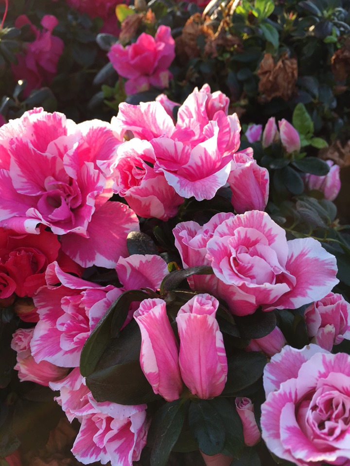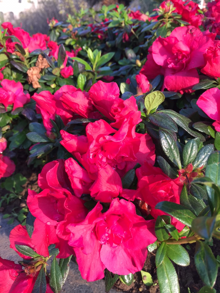 周日,阳光很好,温暖怡人。散步到广场,花坛里的杜鹃花正迎着阳光婀娜地开放着,热烈又妩媚,风韵十足,一派生机勃勃的景象。(20171211)