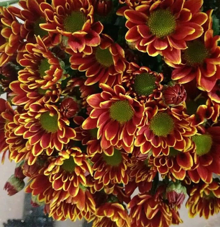 花店里买过多头小菊,名字很贴切,不大的花朵,一簇簇的,不知道和千头菊有没有什么关系。