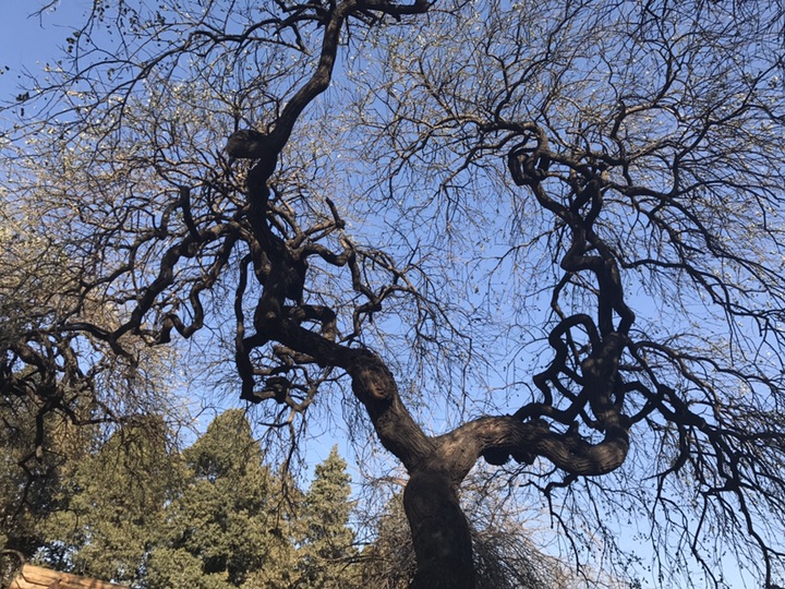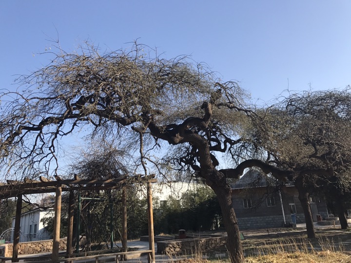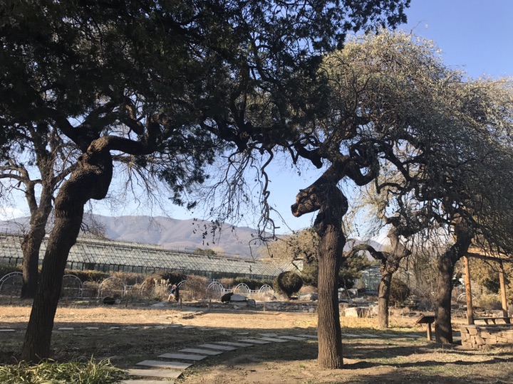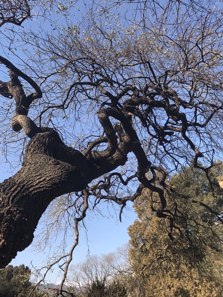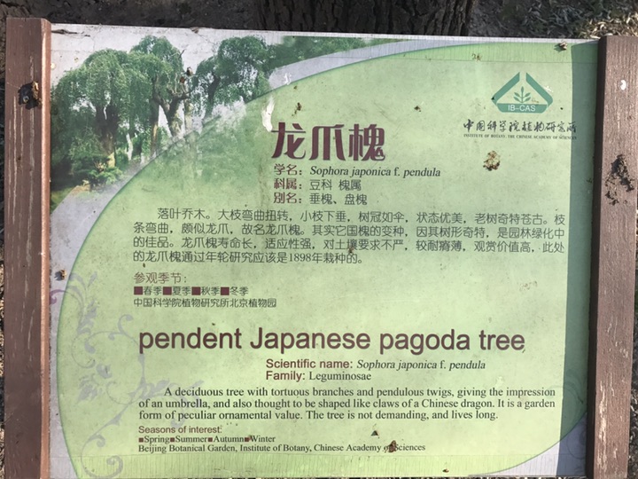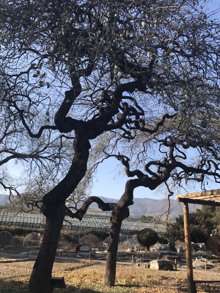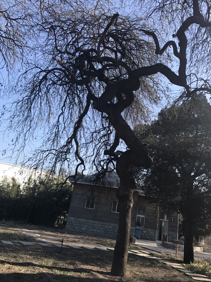 2017年12月17日 天气晴 气温:-4~4°C 这是植物园里的几株龙爪槐,因之前有介绍过它这里就不多说了。据介绍它于1898年栽种,距今已近120年,坦白说120岁也许对于以寿命长著称的龙爪槐来说并没有什么,却是迄今为止我见过的最高大的龙爪槐了