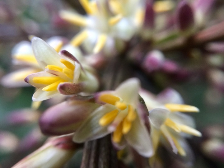 这几天,广州终于成功入冬,迎来了寒冷天气。小区的植物依然绿色。一丛朱蕉不畏严寒,绽放的小黄花美丽而淡定。