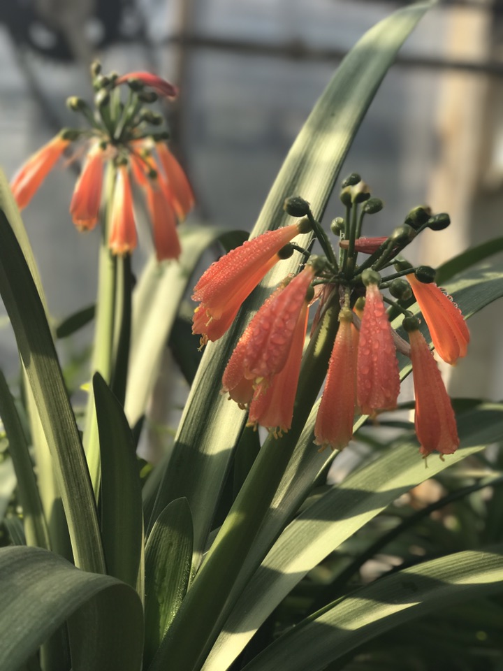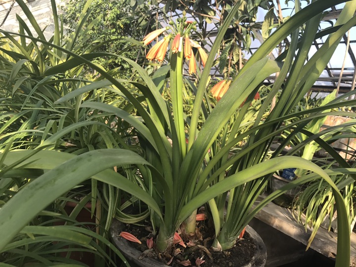 2017年12月20日 天气晴 气温:-6~7°C 垂笑君子兰,因其花开时花序垂腑似美人低头微笑故名为垂笑君子兰,其是石蒜科垂笑君子兰属的植物,主要分布在非洲南部既中国大陆湖北省等地。垂笑君子兰目前多为人工引种栽培,其叶片狭长,花径稍短于叶,花期在12月到来年的5月,花期长达30-50 天。花色有橙黄、橙红和深红等色。 听说垂笑君子兰的成长周期极为漫长,从一粒种子,到开花,需要8至10年的时间,甚至更长。也不知是真是假?!种过的花友们想知道你们的垂笑又孕育了多久才优雅绽放了呢?!