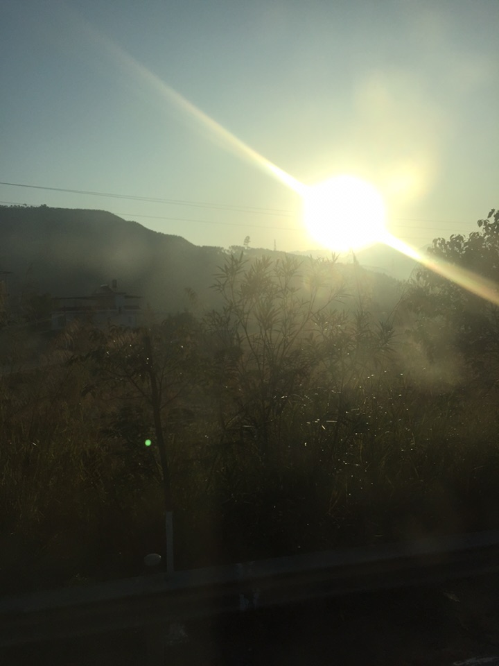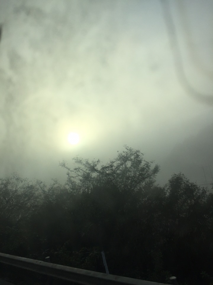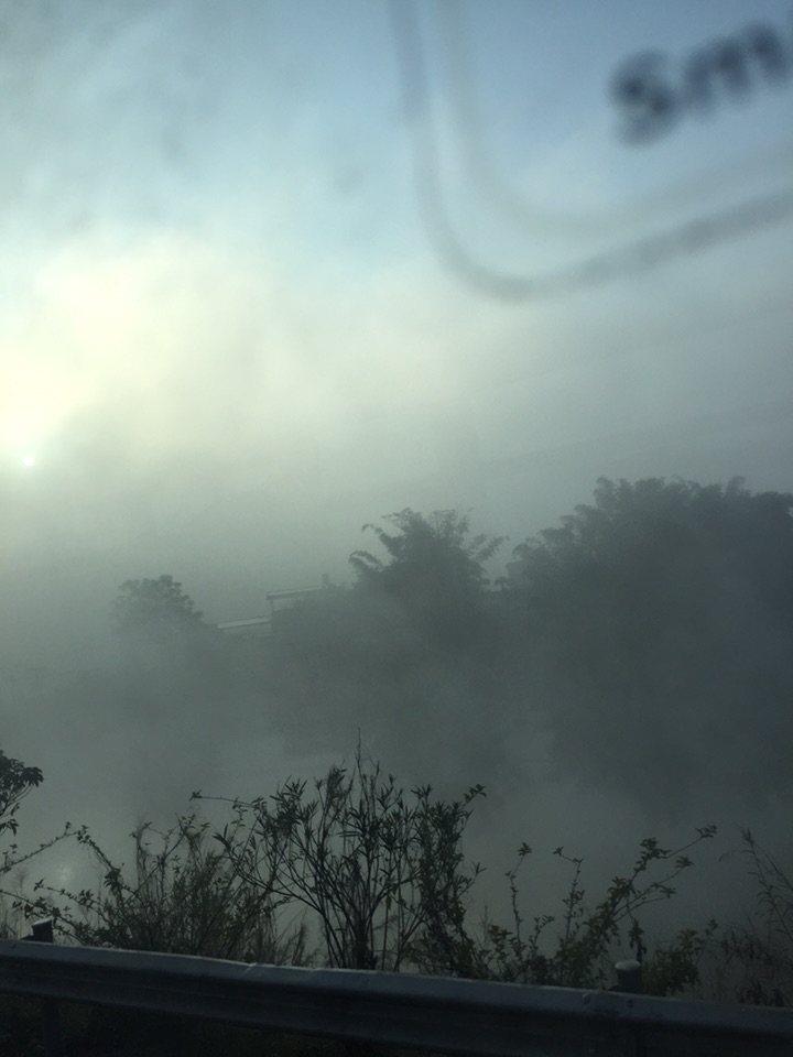 昨晚一夜北风呼啸,今晨郊外白霜浓重。当太阳冲破重重迷雾后,天空渐渐变得明净。