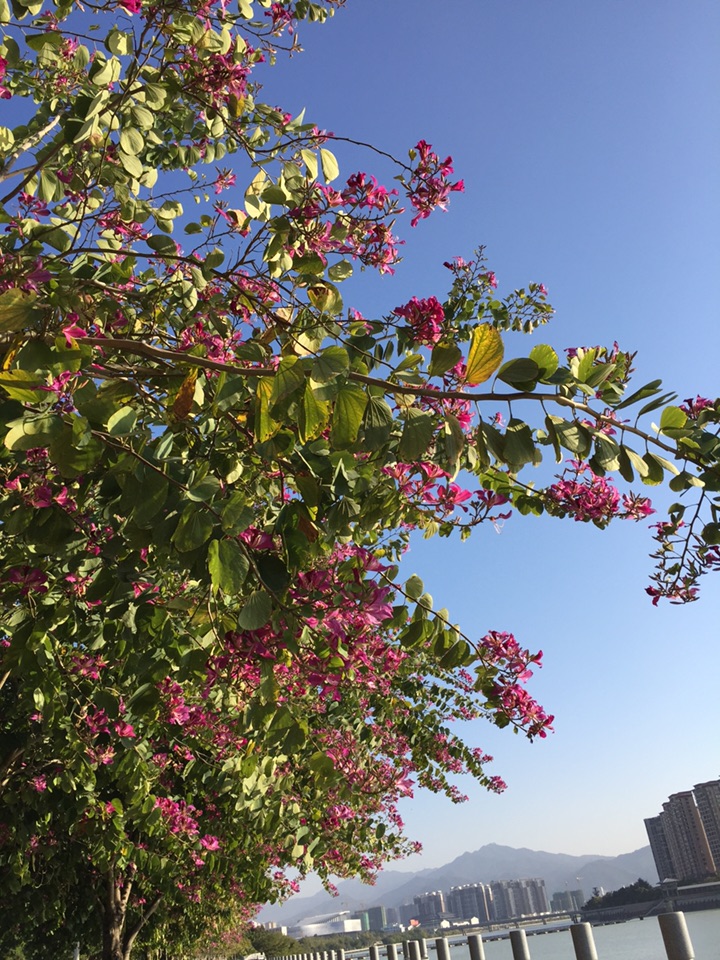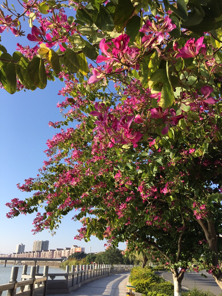 一整天都是灿烂的阳光,羊蹄甲花儿在晴空的映衬下,愈发的美丽。