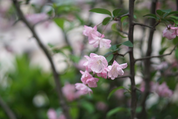 碧桃。大学宿舍大楼外,一个小山坡,都是碧桃,不知道什么时候才能回去再看一看。