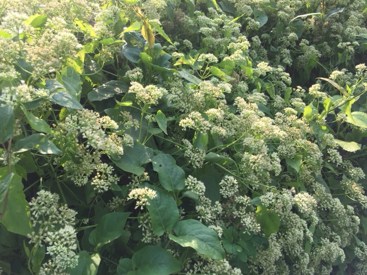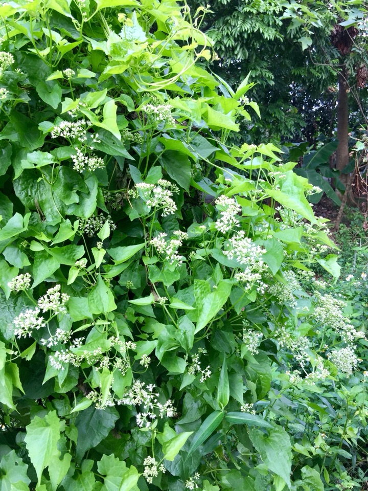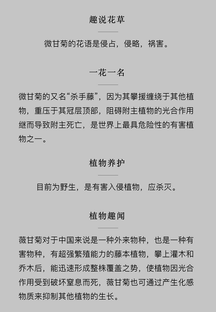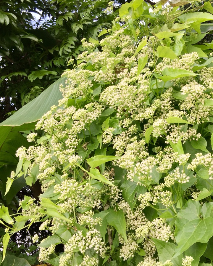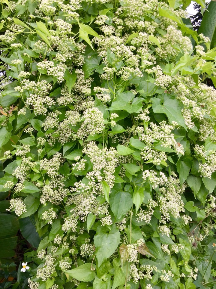 薇甘菊,原产于南美洲和中美洲,现已广泛传播到亚洲热带地区,大约在1919年薇甘菊作为杂草在中国香港出现,1984年在深圳发现,2008年来已广泛分布在珠江三角洲地区。该种已列入世界上最有害的100种外来入侵物种之一。也列入中国首批外来入侵物种。
