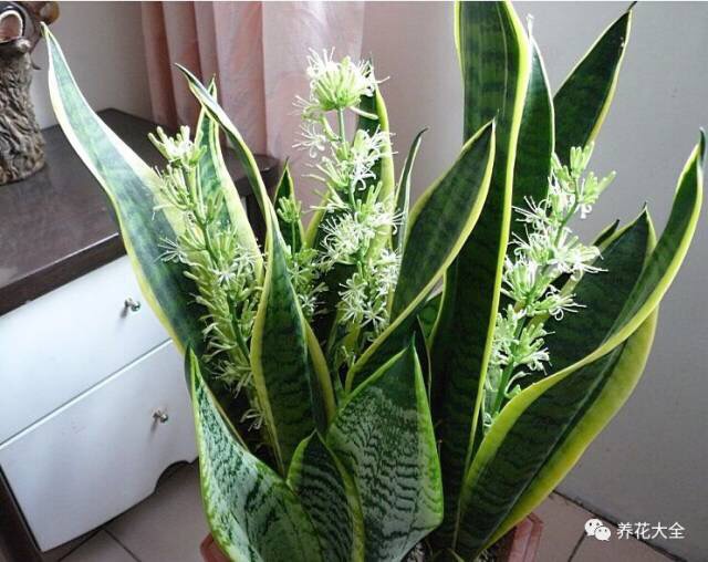 虎皮兰是观叶植物,但是它开起花结起果来一点也不含糊。它开洁白的小花,花瓣细长微微卷曲,非常清新别致噢~