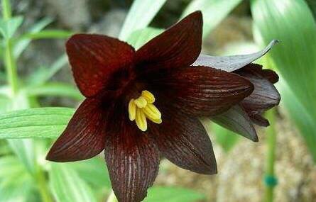 黑百合(黑百合 学名:Fritillaria camschatcensis),百合科植物。 分布于日本中部以北,千岛列岛,俄国库页岛、勘察加半岛、乌苏里地区和北美西北部。高山植物,生长在高山带草地上。夏天开花。花朵为紫褐色,花径约3cm,成钓钟型,花朵朝下。多年生草本。地下有球茎,长10~30cm。虽然叶子是互生的,但是因为密集,有2~3段成轮生状。