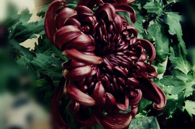 墨菊(墨荷),深紫色,枝干黑紫,粗细不一;花开于老秋,晚于同类,色泽浓而不重,花盘硕大,花瓣中空末端弯曲,在色彩缤纷的秋菊衬托下,凝重不失活泼,华丽不失娇媚。