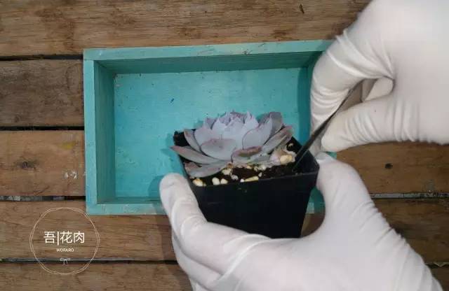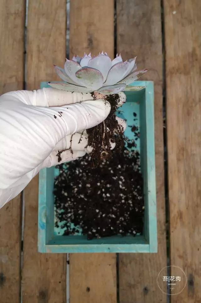 拔出镊子,如果多肉有些晃动,说明没有完全固定。可以在空隙处再填入一些水苔。
