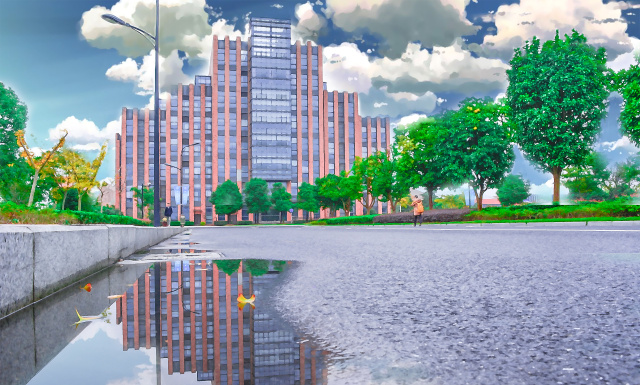 海宁的风呼啦啦啦地吹,气温一降就让人知道,啊秋天来了。秋天里的浙江财江大学东方学院,是最好看的,秋高气爽,天空蓝蓝的,美得就跟漫画一样。