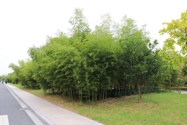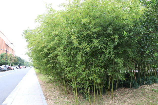 小编的教学楼前面最常见的植物就是这个啦——竹子,都是一块一块种的,一年到头都是翠绿色,特别生机勃勃。这种竹子在小编眼中就是毛茸茸的,叶子特别多,栽种地也很密,特别时候在晴天的日子里用来配合拍照,阳光洒下来,想想就很美好。 竹子是很常见的植物了,它一直代笔着一种坚定不移百折不挠的精神,永远向上,永远蓬勃昂扬。