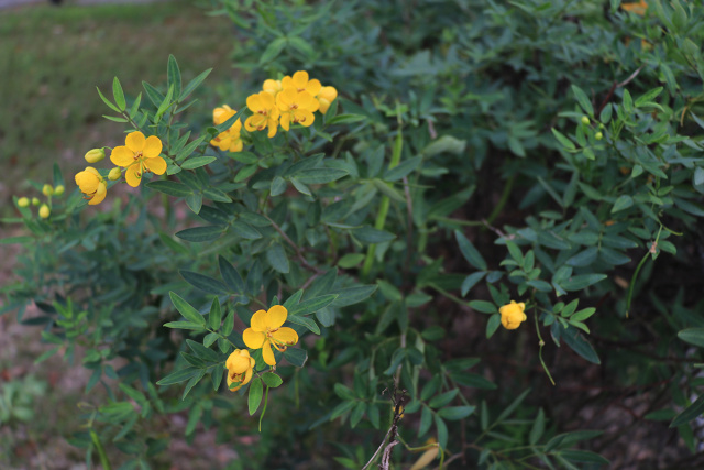 伞房决明是一种很常见的绿化植物,生长速度快,开花的时候金黄色的小花满满的缀在枝头上,特别美。