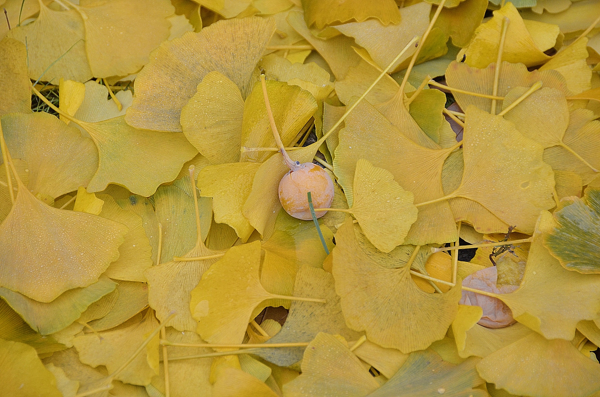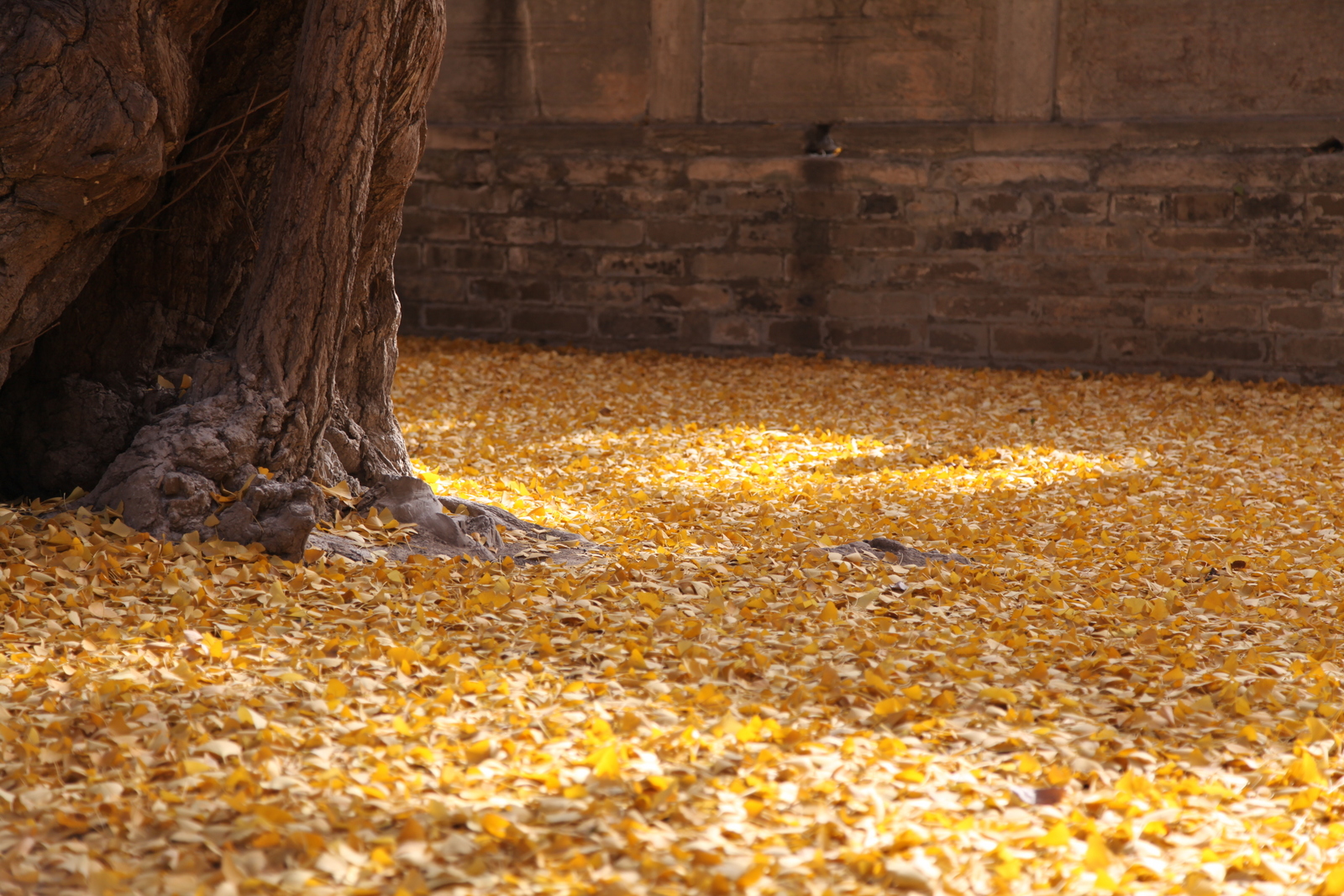 千百年来的每一个秋天,金色的银杏叶都会像这样铺满地面。