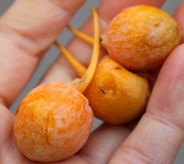 想想也是很奇妙,在人类出现之前,它们就已经存在了。而在久远的未来,它们还会继续站立在这片大地上,等待着一个又一个的秋天吗?有时候,我们会看见银杏树挂起了这样的果子。也许有吃货会好奇,这种果子能吃吗?好吃吗?怎么吃?银杏的“果子”被称为白果,别看它外面圆鼓鼓的,全是虚胖。银杏作为古老的裸子植物,没有果实只有种子。外面那层实是种子的厚厚一层种皮,既不是果肉也并不好吃。真正能食用的,是拨开种皮之后里面的部分,据说还有很高的药用价值。白果烧熟之后口感软糯,闻起来略有臭味,尝起来苦苦的带着一点回甘。除却种子之外,银杏叶片也能入药,据说能促进血液循环、保护血管。不过,味道上肯定就没有白果那么好吃啦。