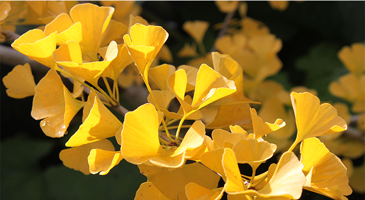【 银杏 Ginkgo biloba 】 银杏科 Ginkgoaceae >> 银杏属 Ginkgo一到秋天,有银杏的地方,都会被染成太阳的颜色。光是看着,都会让人觉得心情愉快而明朗。秋风拂过,叶片就像黄蝶一般,或在枝头轻轻振翅,或飞舞而下,在地面铺成一片金色的地毯。千百年来的每一个秋天,金色的蝴蝶都会像这样铺满地面。甚至在很久很久很久以前,某只恐龙的眼眸中,一定也曾映照过这样的景色。银杏已经在地球上生存了非常漫长的时间了。早在三叠晚期,两亿多年前起,它和它的同类植物就已经开始生长在地球上,是真真正正的“活化石”一般的存在。