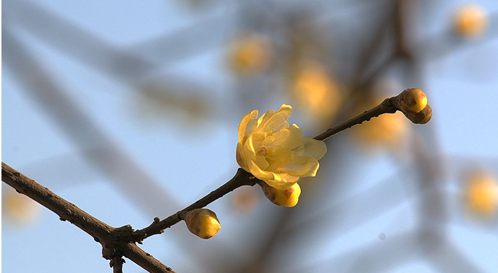 蜡梅,也称黄金茶,黄梅、金梅,但却不是梅花的一种。蜡梅和梅花完全是两回事,它们不是同一科属,我们常说的凌霜傲雪的梅,其实是指蜡梅。 蜡梅(学名:Chimonanthus praecox)是蜡梅科蜡梅属的植物。中国古名蜡梅,因为颜色似蜜蜡而得名。因在腊月开花,又被称为腊梅。 隆冬到来时,百花已绝迹,唯有蜡梅破,凌雪独自开。蜡梅的香气就如秋季的桂花香,持久浓郁,路过时会被这香气吸引,屏气呼吸,感受自然的芳香。 在南方,蜡梅花期早的十月末就到了,大部分地方还是要等到十二月。杭州欣赏蜡梅的地方很多,小编常去的是灵峰,老底子的杭州人都会选择“灵峰探梅”。另外,南京的钟山风景区也是赏梅的佳地。 蜡梅品种不多,以花色来分有素心、荤心两种。花瓣、花心、花蕊都为黄色,无杂色相混的叫素心种。外瓣为黄色,内瓣中心泛紫色,花色不纯的为荤心种。荤心蜡梅瓣尖而内缘红褐,花小而香淡,品种就差了。目前常见的品种有:素心蜡梅、磬口蜡梅、小花蜡梅。 蜡梅不仅是观赏花木,也是制高级花茶的香花之一。它提炼而成的高级香料,在国际市场上1000克相当于5000克黄金的价格。 蜡梅的果实药用名为:土巴豆,有毒,可以做泻药,不可误食。腊梅的果子在成熟前是绿色的,成熟后变成灰褐色。 一朵朵蜡梅花,小巧玲珑、金黄可爱,好似迎面吹来一股清新风,吹“散”了这恼人的雾霾,让我们在蜡梅香中迎来新的一年!