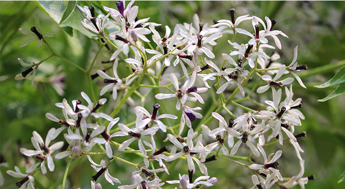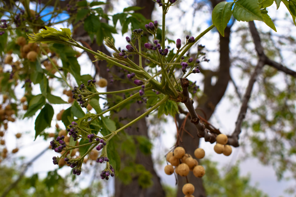 以前家乡的楝树总是无处不在,楝花盛开的季节,整个村子浸泡在楝花的香气中。