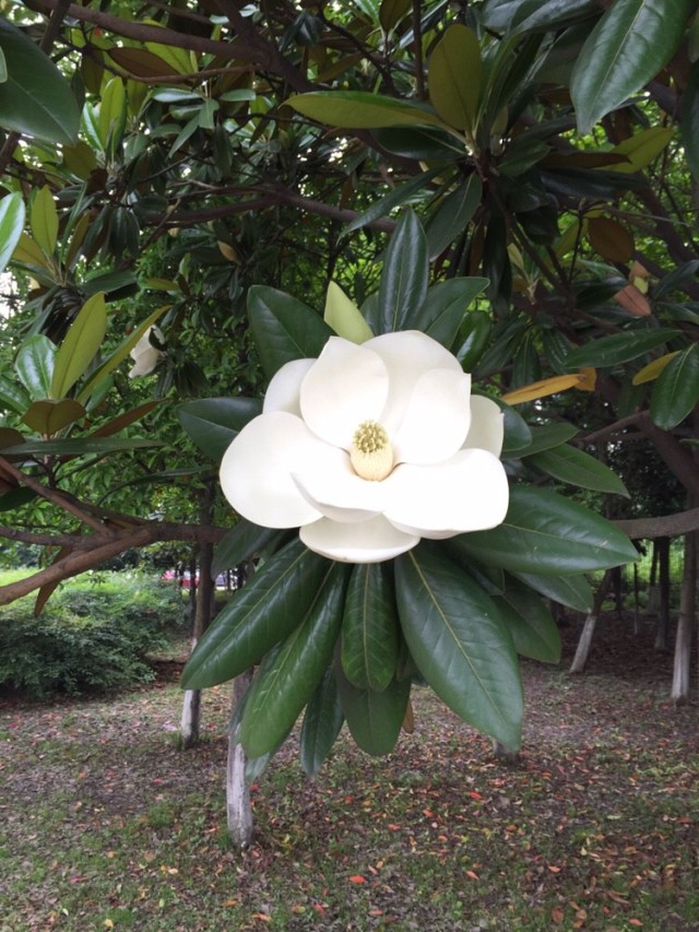 它的名字是广玉兰,也叫荷花玉兰,开花的时候像极了荷花开在了树上,所以我更喜欢叫它荷花玉兰。
