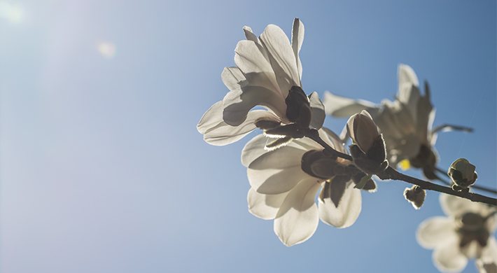 它的名字是广玉兰,也叫荷花玉兰,开花的时候像极了荷花开在了树上,所以我更喜欢叫它荷花玉兰。每天上班的路上,过了马路就能看到这棵树,一年四季,见的都是绿油油的叶子,看到花开也就这几日。于是,从见到它露出白色的花苞开始,便决心要记录它绽放的过程。五月中旬的一天,枝头的荷花玉兰悄悄露出了花苞,数量不多,一棵树上我数了一下,大概是二三十个。第二天,上图下方的花我拍了特写,花瓣明显舒展开,24小时就有了明显的变化,我期待起了第三天。这是第三天经过时拍的,已经算是半开了,这时候的花直径有10-15厘米了,就像成人的手掌般大小。第四天,完全开了的样子,也是我停留最久的一刻,看了看树上的玉兰,大部分都开了,只是这棵树背靠着绿化区,只有一面是朝着马路,所以其他藏在里面的花是看不到的。荷花玉兰开的时候恰逢母亲节刚过,不觉得联想到荷花玉兰像极了母亲——积攒辛苦、面容沧桑却香气萦怀。荷花玉兰在一年的大多时候被人忽视,默默积攒着力量,在不为人注意的高枝上,洁白的花自开自落,半月即逝。如果我们有心,自会嗅到空气中那缕馥郁的香气,抬头发现她的盛放,如果步履匆匆,也就错过了这短暂的花期。远在家乡的母亲,何尝不是呢?孩子归来的那几日,也是母亲的花期,孩子走了,母亲也开始了新的等待。