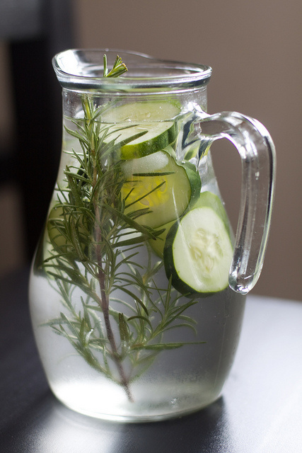 养好迷迭香,夏天冷饮不用愁。将黄瓜切片,迷迭香冲洗一下,放入水杯,加入清水,稍微搅拌,冷藏2小时,就可以畅饮了!