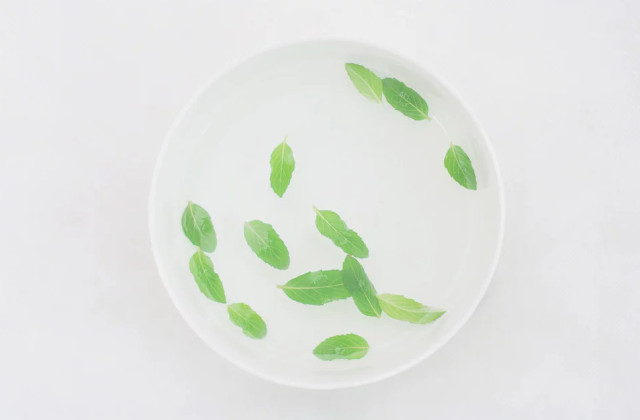 1.绿茶先泡出味,稍微放凉后,加入揉碎的薄荷叶。