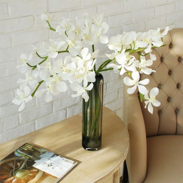 千代兰是兰花的一种,由乌舌兰和万代兰杂交而产生。千代兰花色缤纷悦目, 全年都有开花的品种, 但大多数集中在春季或夏秋, , 花色的变化很丰富, 有多种颜色。 而在两人眉眼带笑的婚纱照中,即使是手中的捧花也掩盖不了从照片里蔓延出的幸福感,玫瑰和银叶菊一起,将新娘新郎上翘的嘴角微微遮住。每次都会在婚礼中出现的象征着爱情的玫瑰花,这次也不会例外,在老干部霍建华的婚纱照中,又一次体现了人比花娇的美感。玫瑰下方的银叶菊似乎是可以忽略的,但似乎又是不可或缺的,它一下解了那种玫瑰过重的脂粉气,又带着美好的祝愿让新郎新娘的双手紧紧交握。 银叶菊作为一种奇特的花材,常常作为点缀搭配玫瑰、芍药当婚礼上新娘的手捧花,意味着收获幸福。 林心如和霍建华的婚礼请贴上写着这么一句话,十年挚友蜕变挚爱,这样的美好爱情,在鲜花的衬托下,总让人们忍不住开始祝福,祝愿长长久久和花好月圆。当然,也祝福每一位单身狗们早日找到如花美眷,每一对蜜里调油着的情侣们都能够有这样一场,充斥着鲜花和掌声的婚礼。